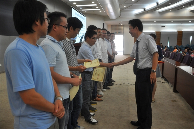 随后进行的是优秀师生表彰环节,根据院内相关政策,对2014年10月至2015年8月底在科研中表现突出的十二位教师和二十二位研究生进行表彰奖励,由任教授颁奖。获奖教师代表李鹏飞教授和获奖学生代表王玲同学发表获奖感言。