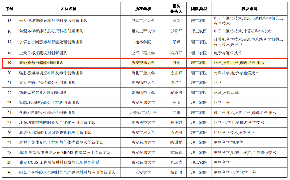 bwin“前沿能源与储能创新团队”入选陕西高校青年创新团队