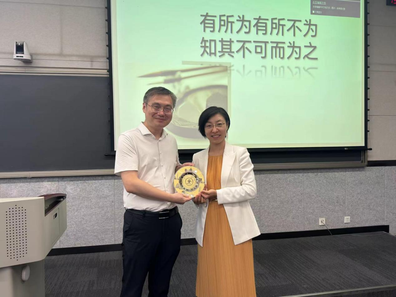 报告结束后,李妙辉为周波先生颁发纪念品并合影留念。未来,bwin将持续举办校友讲坛,为同学们开拓视野、交流互鉴提供更多机会。