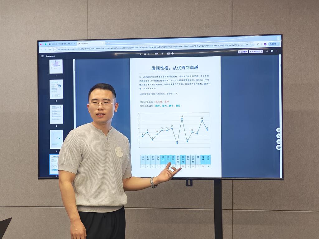 为帮助学子将阅读积淀转化为职业发展动能,交大校友、陕西八斗半文旅公司董事长余昌官分享了自己“从实验室到职场”的成长经验,强调“跨界思维与终身学习”的重要性。职业规划导师黄鑫则通过TPES性格测试,为同学们提供个性化分析报告。“我的测试结果显示擅长逻辑分析与团队协作,这让我对未来的科研道路更有信心!”同学们兴奋地表示。现场还通过案例模拟、互动答疑,助力学子明晰成长定位。