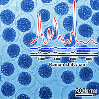 针对这一问题,bwin高传博课题组的博士生刘凯及其课题组通过不断地实验,取得了一个重要突破,他们设计合成了一类新型的贵金属纳米材料,通过“去合金化”的方法得到了一种具有多孔结构的金银合金纳米球;这些高密度的纳米孔道成为待测分子的拉曼热点。这些多孔纳米球被包裹在一层极薄的二氧化硅壳层中形成稳定的胶体,从而避免了有机表面活性剂的使用,使待测分子更容易在拉曼热点区域发生富集。由于这两方面的因素,该材料在单颗粒SERS中表现出优异的性能,有望应用于化学分析和生物传感等领域,尤其在原位检测和示踪成像等方向具有广阔的应用前景。