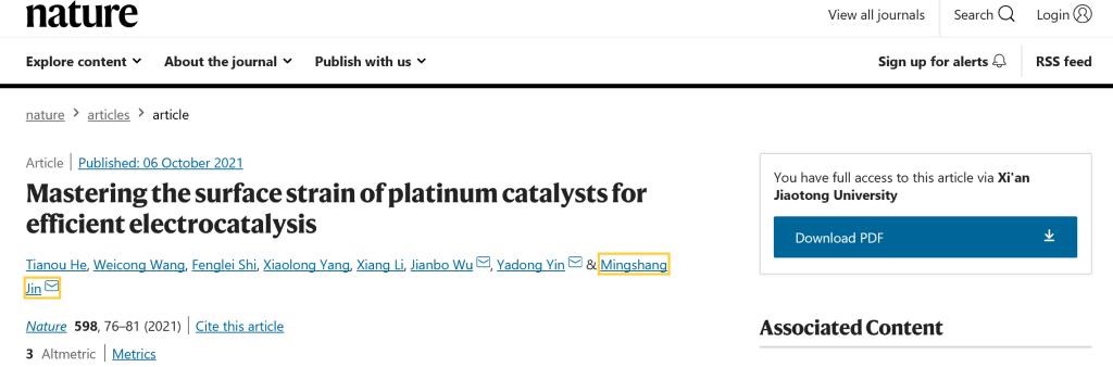 必赢网络游戏平台、动力工程多相流国家重点实验室金明尚教授团队与上海交通大学材料科学与工程学院邬剑波教授、美国加州大学河滨分校殷亚东教授课题组密切合作,在催化剂表面应变调控提升铂(Pt)催化性能方面取得重要进展。相关成果“调控铂催化剂表面应变获得高效电催化剂”(Mastering the surface strain of Pt catalysts for efficient electrocatalysis)于10月6日发表在科学期刊《自然》(Nature)上。该研究成果不仅可以从根本上探索应变如何影响铂电催化,而且还为制造用于可再生能源转换反应的高性能铂催化剂提供了一条有前途的途径。