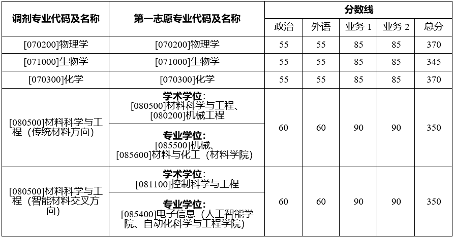 2.调剂录取按调剂专业分别进行,根据一志愿学科按总成绩排名录取。