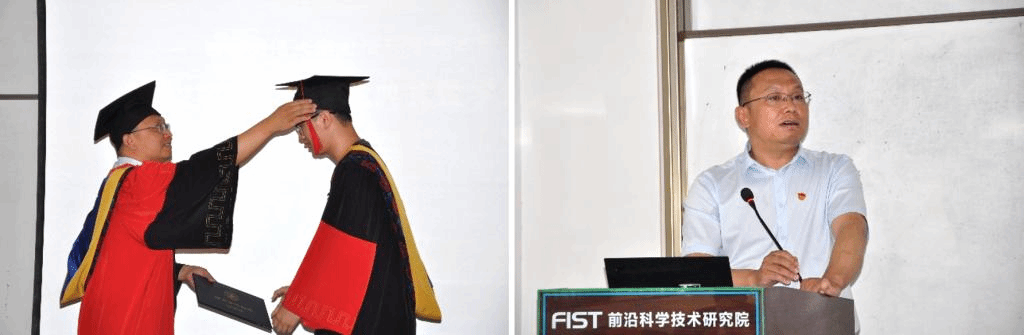 何刚首先向全体参会人员通报研究生毕业人数及就业情况。他表示,校园学习生涯已经告一段落,各位同学都取得了优秀的成绩。在未来,无论是在学术上继续深耕,还是入职企业,或是在其他岗位上服务人民,希望同学们传承好西迁精神,倾尽所学,保持热情、努力耕耘,积极投身民族复兴伟大事业。