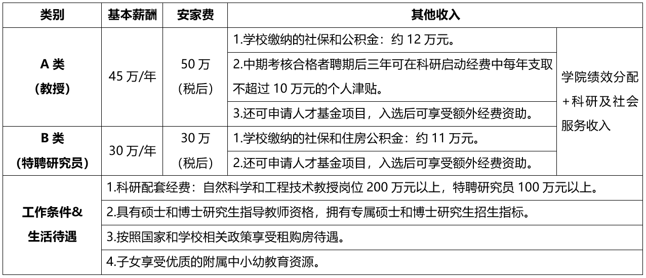 1.薪酬待遇:30万元/年,还可获得奖励性绩效津贴、科研及社会服务收入。