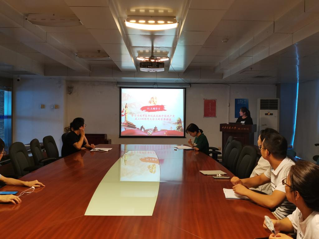 支部书记康瑞瑞同志带领大家学习习近平总书记在庆祝中国共产党成立100周年大会上的重要讲话。一百年来,中国共产党团结带领中国人民,以“为有牺牲多壮志,敢教日月换新天”的大无畏气概,书写了中华民族几千年历史上最恢宏的史诗。习近平总书记指出,新时代的中国青年要以实现中华民族复兴为己任,增强做中国人的志气、骨气、底气,不负时代,不负韶华,不负党和人民的殷切期望。