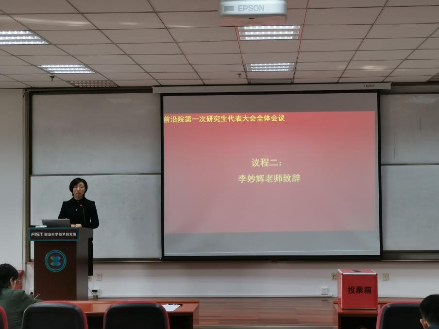 李妙辉老师在致辞中提到,研究生会要始终坚持全心全意为同学们服务,发挥桥梁纽带作用,希望所有当选的研究生代表能够肩负起传递同学们心声的责任,行使民主权利,争做时代先锋,齐心协力助力大会圆满成功。