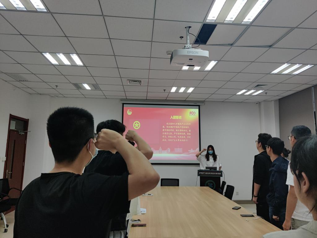 会议伊始,团员们在2021级硕士团支部书记张恒的带领下,重温入团誓词。全体团员面对团旗,高举右拳,庄严宣誓。
