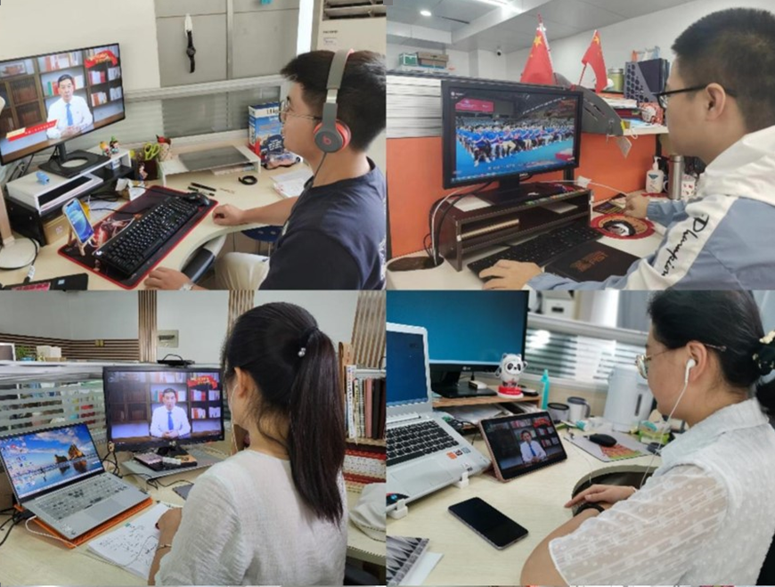 在直播观看“高校典礼育人微党课展播第一讲”结束后,各位师生党员在学习和交流中也深刻认识到,青年应当以知促行、以行促知,努力承担起更多的社会责任。材料化学党支部刘旭分享交流了去年疫情中青年党员勇于冲上前、敢于站一线的奉献精神和责任意识,他们将所学用于所为,以实际行动践行初心与使命。教工党支部入党积极分子张越巘表示,愿将所学与责任紧密结合,持续发扬“敢打敢拼”“事不避难”的创新精神和担当精神,着眼关系国计民生的重大问题,坚持“四个面向”,助力产业、服务社会、造福人民,在祖国最需要的地方奉献智慧和力量。